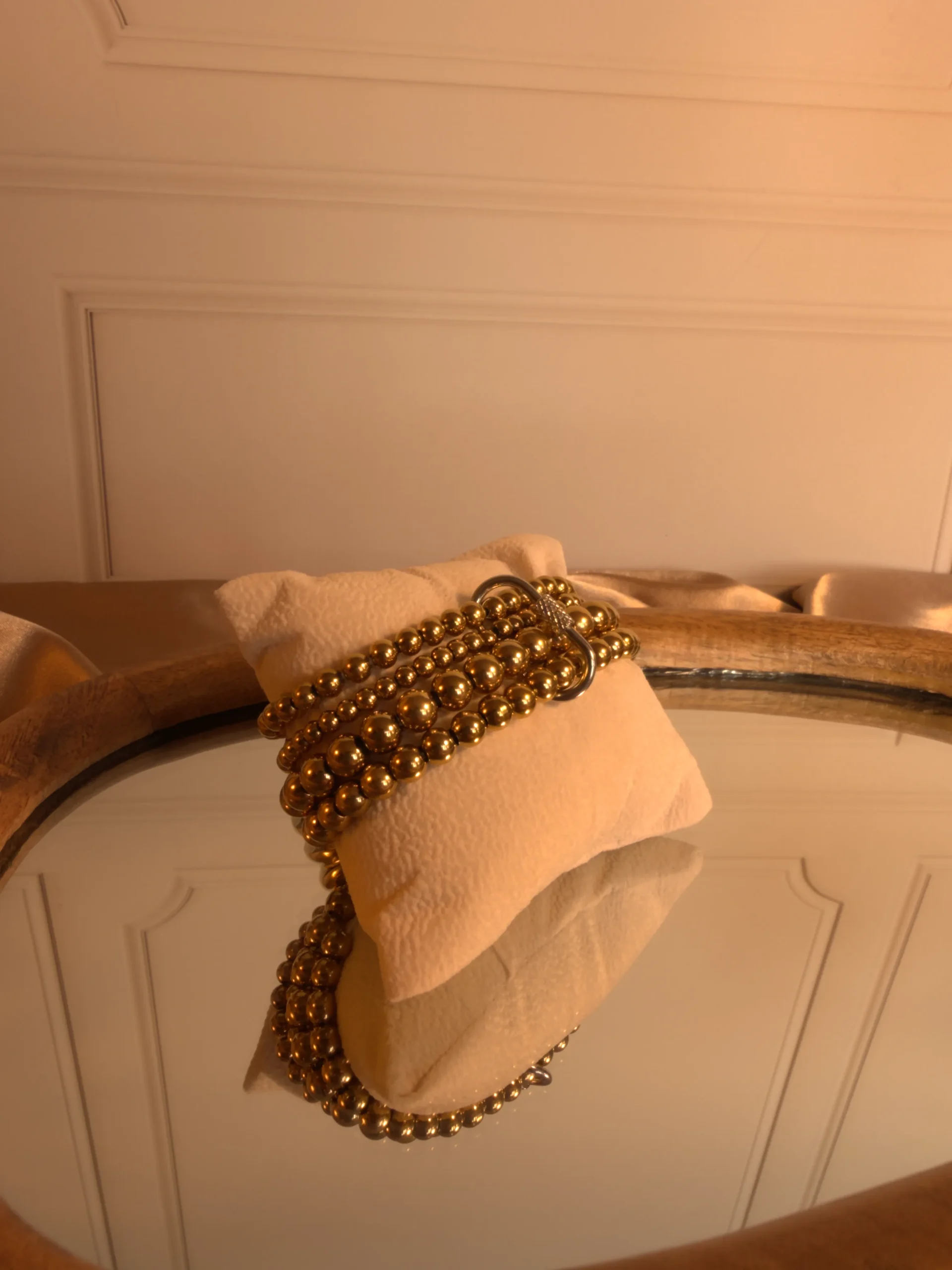 Cuatro pulseras en una sola, con diferentes tamaños de bolitas, elevan y dan brillo a tu muñeca.