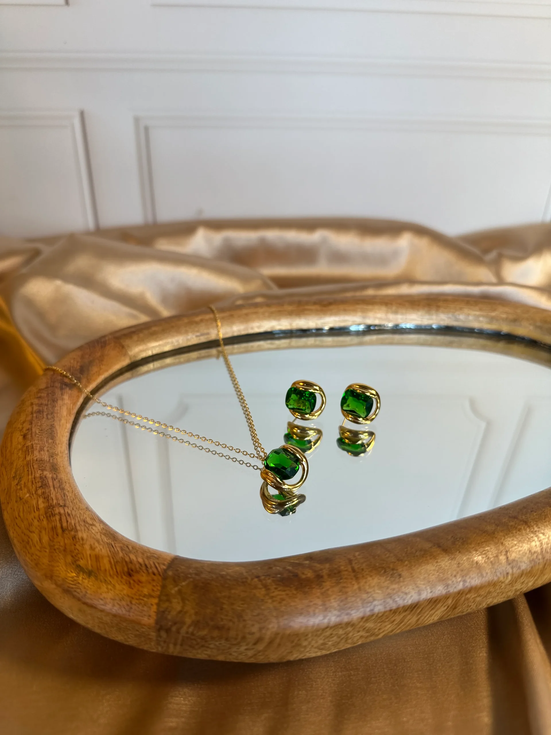 Aretes y collar con zirconia verde, de brillo intenso que roba miradas.