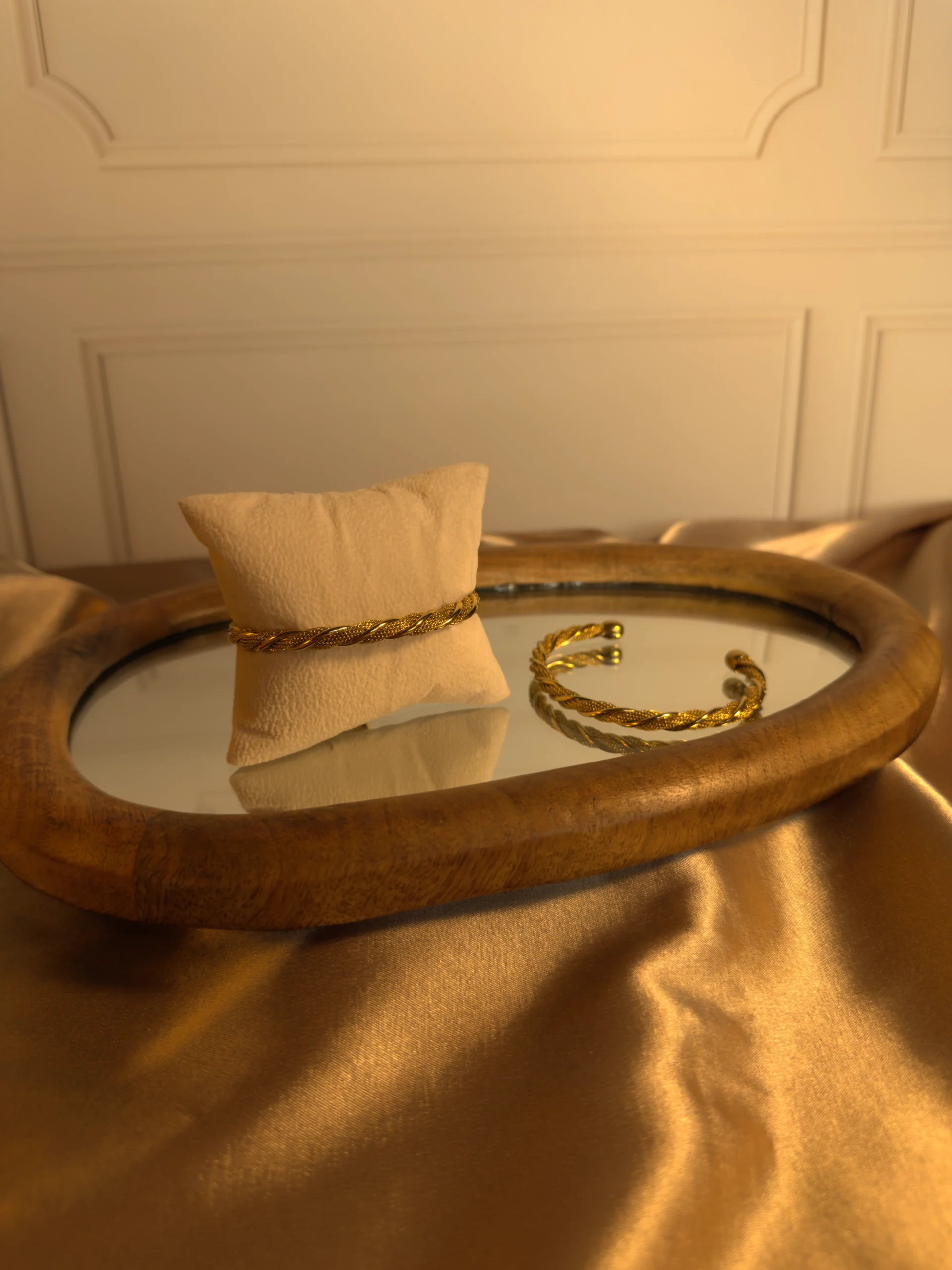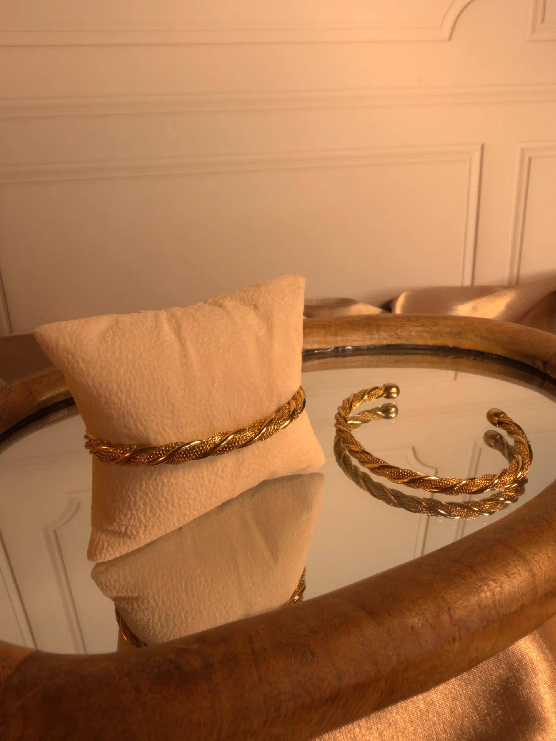 Pulsera abierta, lazo tejido elegante, sofisticado y lleno de actitud.